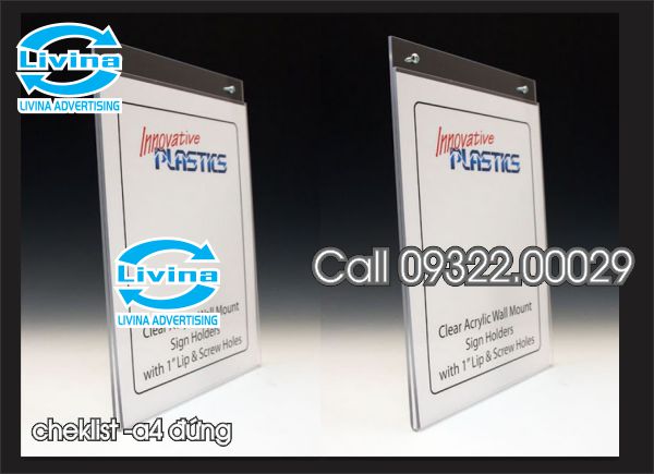 tường, kệ đựng báo giá treo tường, Checklist đựng tài liệu , Kệ mica thực đơn 2 mặt, Khay mica, kệ mica để